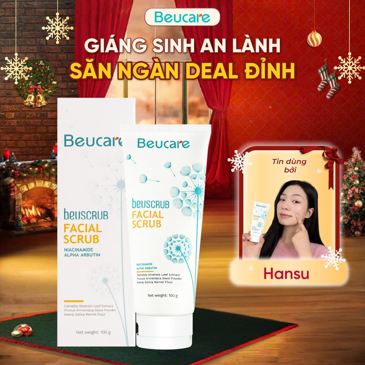 Beuscrub là dòng tẩy da chết dịu nhẹ, giúp làm sạch sâu, loại bỏ tế bào chết, thúc đẩy tái tạo da mà vẫn đảm bảo độ ẩm và sự mềm mại tự nhiên. Kết hợp các thành phần thiên nhiên như đất sét Kaolin, trà xanh, bột yến mạch, niacinamide, và allantoin, sản phẩm không chỉ giúp da sạch mịn, mà còn làm sáng da, ngừa lão hóa và thư giãn tinh thần sau mỗi lần sử dụng.
