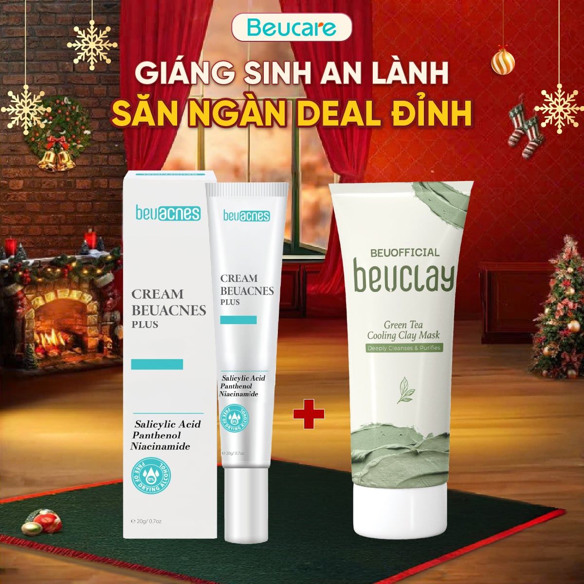 [COMBO 1MN +1 TM] - Combo 1 Kem Mụn BEUACNES PLUS 15g, Giảm Mụn Sáng Da, Mờ Thâm + 1 Tuýp Mặt Nạ Đất Sét BeuClay Skincare Mặt Nạ bùn Chăm Sóc Làm Đẹp Da, Dưỡng Ẩm Da tốt TMN001
