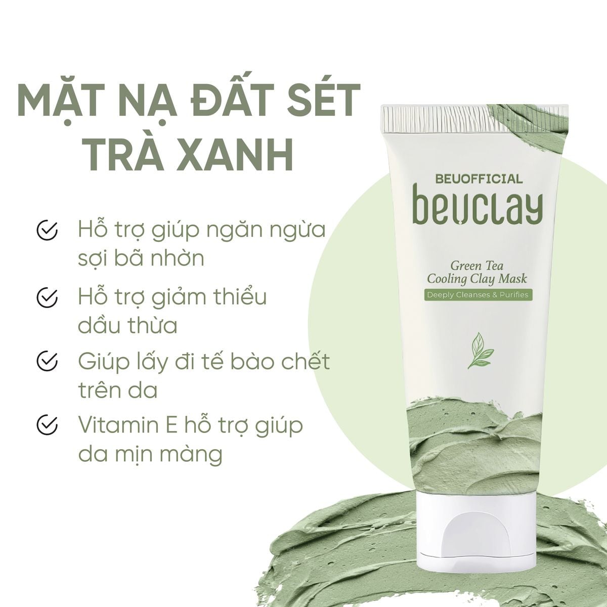 ✅ Kết hợp với trà xanh giúp kiềm dầu, bã nhờn, mụn đầu đen