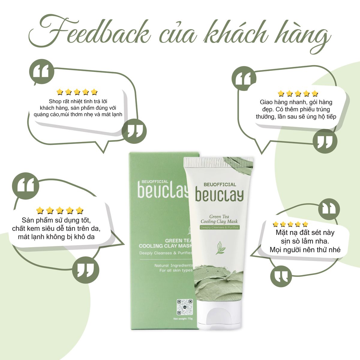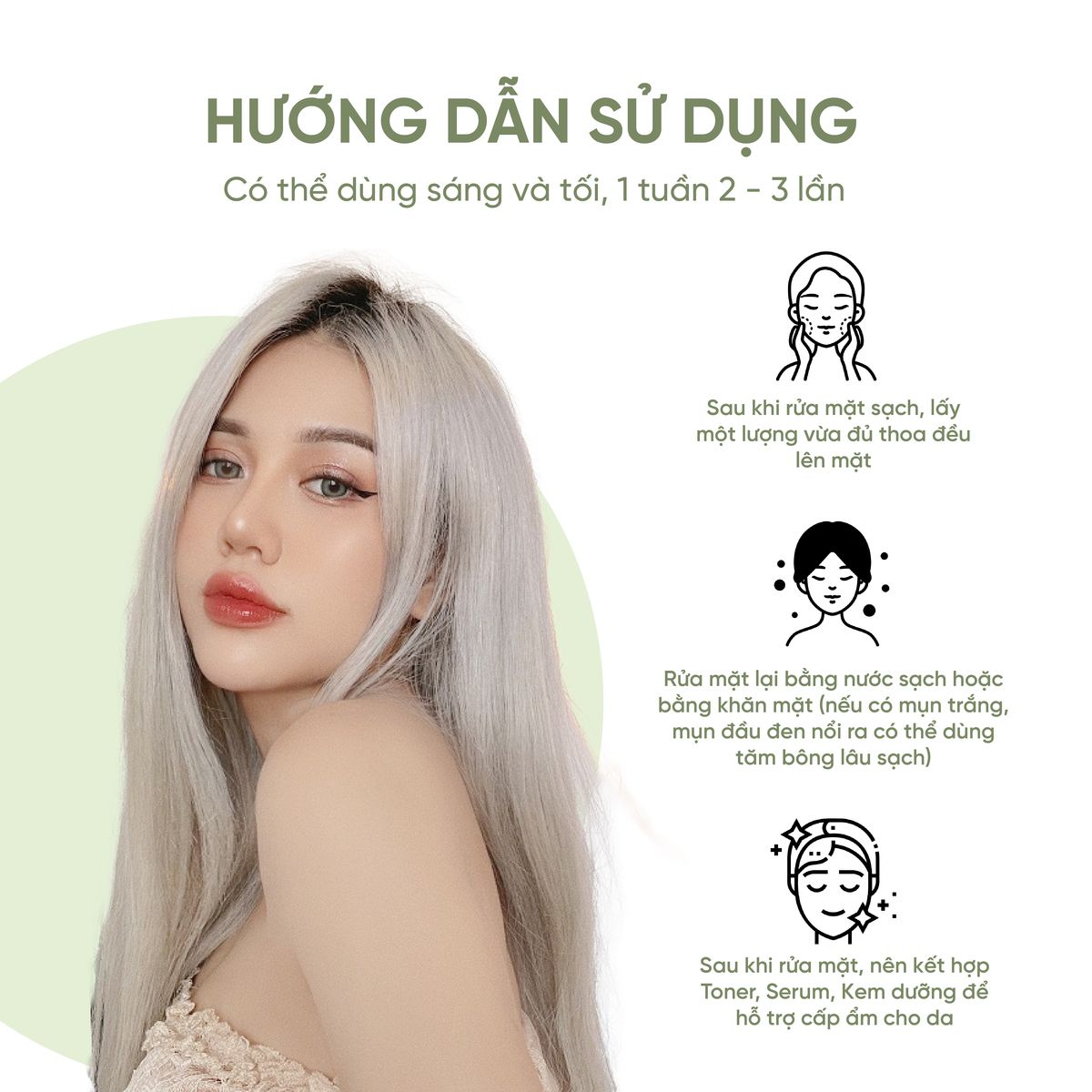 - Hướng dẫn sử dụng: Bước 1: Làm sạch da mặt của bạn trước khi sử dụng Bước 2: Thoa đều 5 vùng : trán, mũi, 2 má và cằm tránh vùng mắt Thoa theo vùng chữ T, từ trong ra ngoài nhẹ nhàng cho các tinh chất dễ thẩm thấu hơn Bước 3: Để yên và thư giãn Bước 4: Khi mặt nạ khô, nhẹ nhàng rửa sạch bằng nước rồi lau khô Bước 4: Kết hợp Toner, Serum để cấp ẩm cho làn da Có thể dùng sáng và tối, 1 tuần 2-3 lần và sau những lần stress, mặt nạ bùn trà xanh BeuClay sẽ giúp thư giãn làn da bạn.