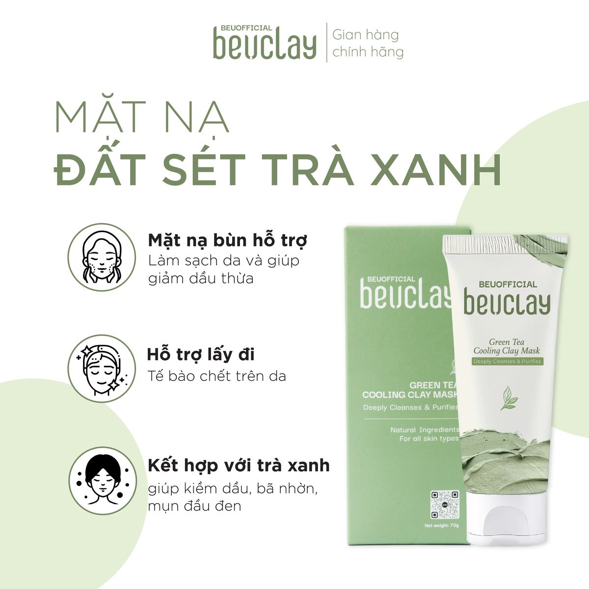 MẶT NẠ ĐẤT SÉT BEUCLAY - Thiết kế: dạng tuýp - Dung tích: 70g Nguồn gốc xuất xứ: Việt Nam Thành phần & công dụng: